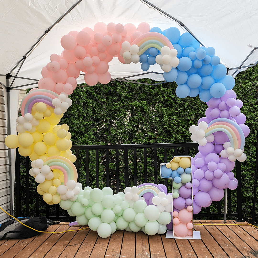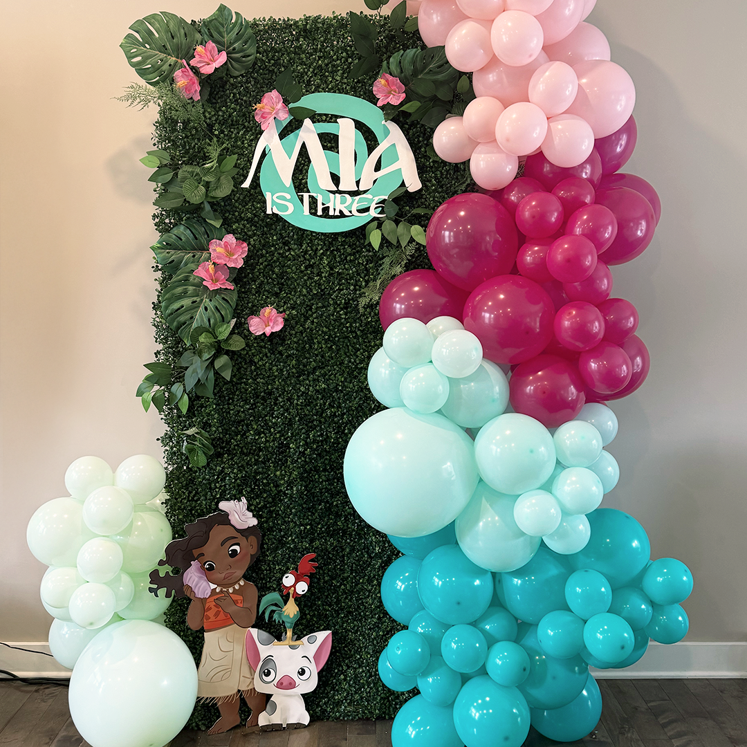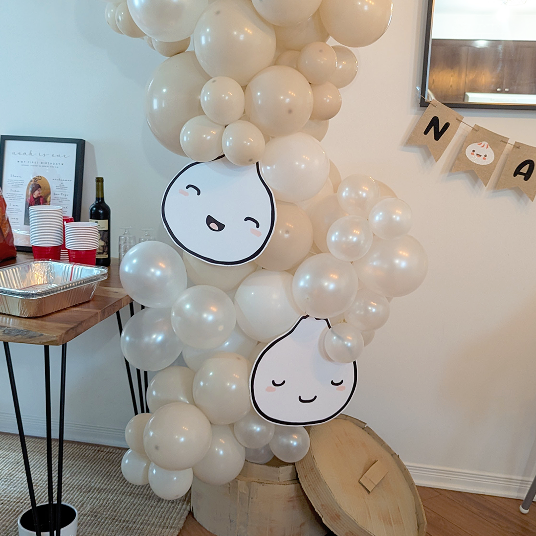 Showering with love. Baby shower decorations, double arc balloons backdrop, centerpieces, favors, seating chart, welcome sign.