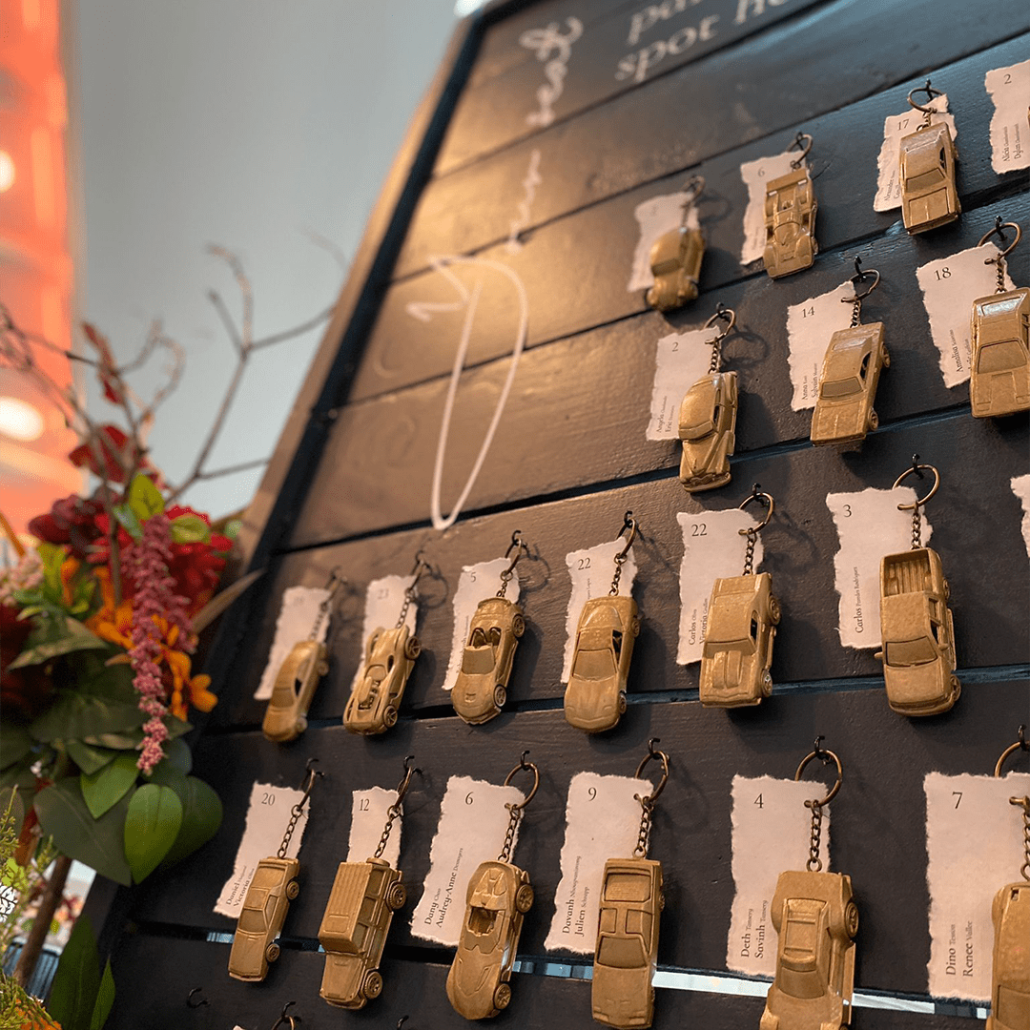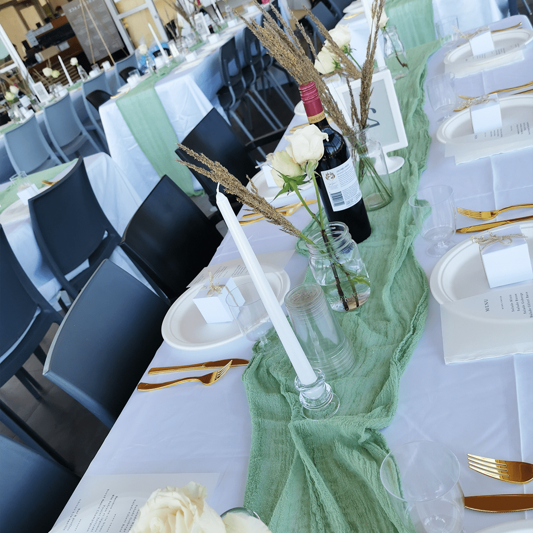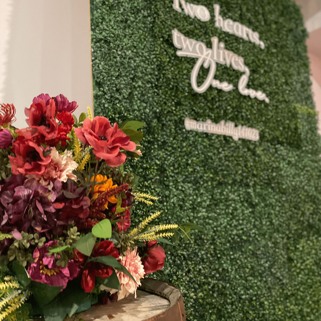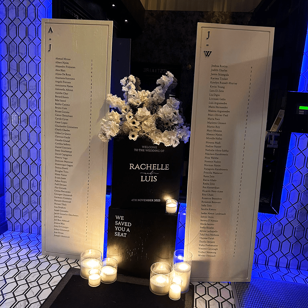 Beautiful wedding with flowers, moon backdrop, custom invitations, menu, seating chart, favors, knit pumpkin, custom letterbox made from scratch, and centerpieces.